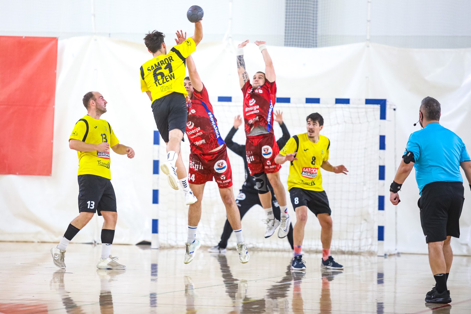 Zdjęcia z wygranego po rzutach karnych spotkania 21. kolejki Ligi Centralnej przeciwko Handball Stali Mielec. Autorką zdjęć Anna Kajat.