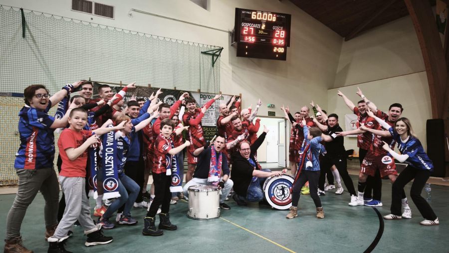 W szatni panowało skupienie i uzgadnialiśmy szczegółowy plan na drugą odsłonę meczu. Weszliśmy znowu doskonale - dwa trafienia zanotował Dawid Reichel, a bramce najskuteczniejszego tego wieczoru na parkiecie Kacpra Łapińskiego prowadziliśmy 19:15. Gospodarze ponownie rzucili się do odrabiania strat, lecz tym razem nie pozwoliliśmy na rzucając kolejne trafienia (Łapiński, Reichel i Filip Cemka). Mecz był prawdziwą wojną o każdy centymetr parkietu, a atmosfera była tak gorąca, że trenerzy obu zespołów zobaczyli żółte kartki. Jedynka niebezpiecznie zbliżała się do nas na jedno trafienie, aż w 59. minucie spotkania, po szóstym (!) trafieniu z rzutu karnego ex-Warmiaka Radosława Dzieniszewskiego tablica świetlna w Morągu pokazała remis 27:27. Emocje sięgały zenitu, a morąscy kibice wpadli w euforię mając wymarzone punkty na wyciągnięcie ręki. Za chwilę role się jednak odwróciły, gdyż halą uciszył Mikita Baranau zdobywając 28. trafienie i to sektor naszych kibiców skakał z radości. Ostatnie słowo należało jednak do gospodarzy, którzy wypracowali siódmy w tym spotkaniu rzut karny. Do piłki meczowej podszedł nieomylny do tej pory Dzieniszewki, który... przegrał pojedynek z Czarkiem Kaczmarczykiem!